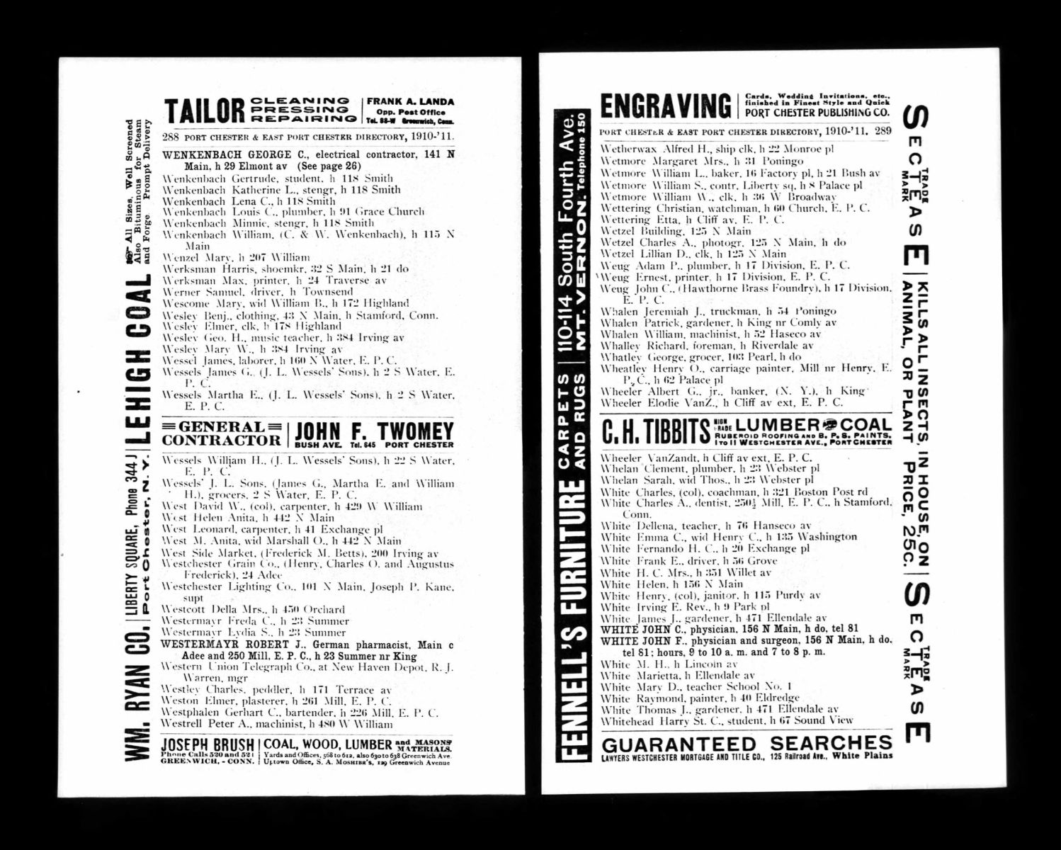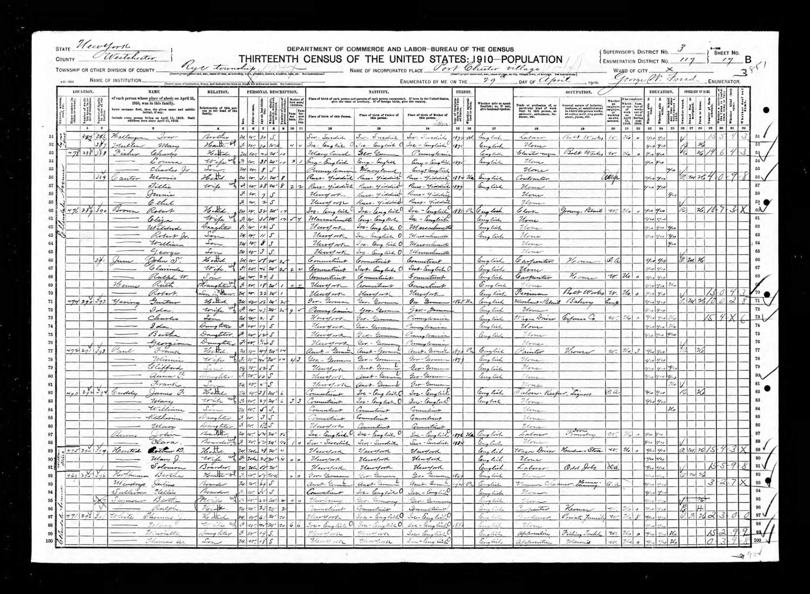 - Lived in the Village of Port Chester, Town of Rye, Westchester County, New York from 1899–1921