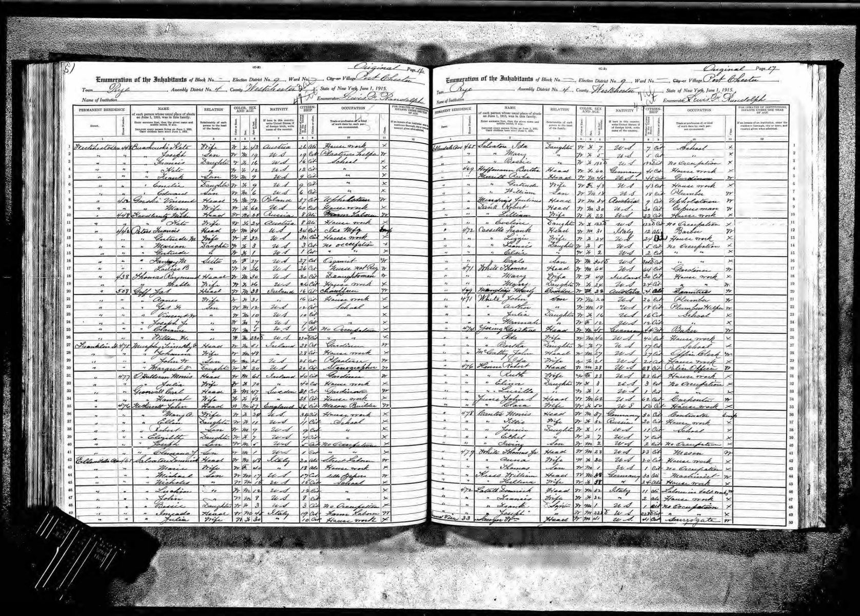 1910 U.S. census, Westchester County, New York, population schedule, Port Chester Village, ward 4, enumeration district 117, p. [147]-B [stamped], sheet 17 [penned], 471 Ellendale Avenue, dwelling 296, family 398, Thomas White [Head]; digital images, Ancestry.com (www.ancestry.com : accessed 27 February 2015); citing NARA microfilm publication T624, roll 1092.