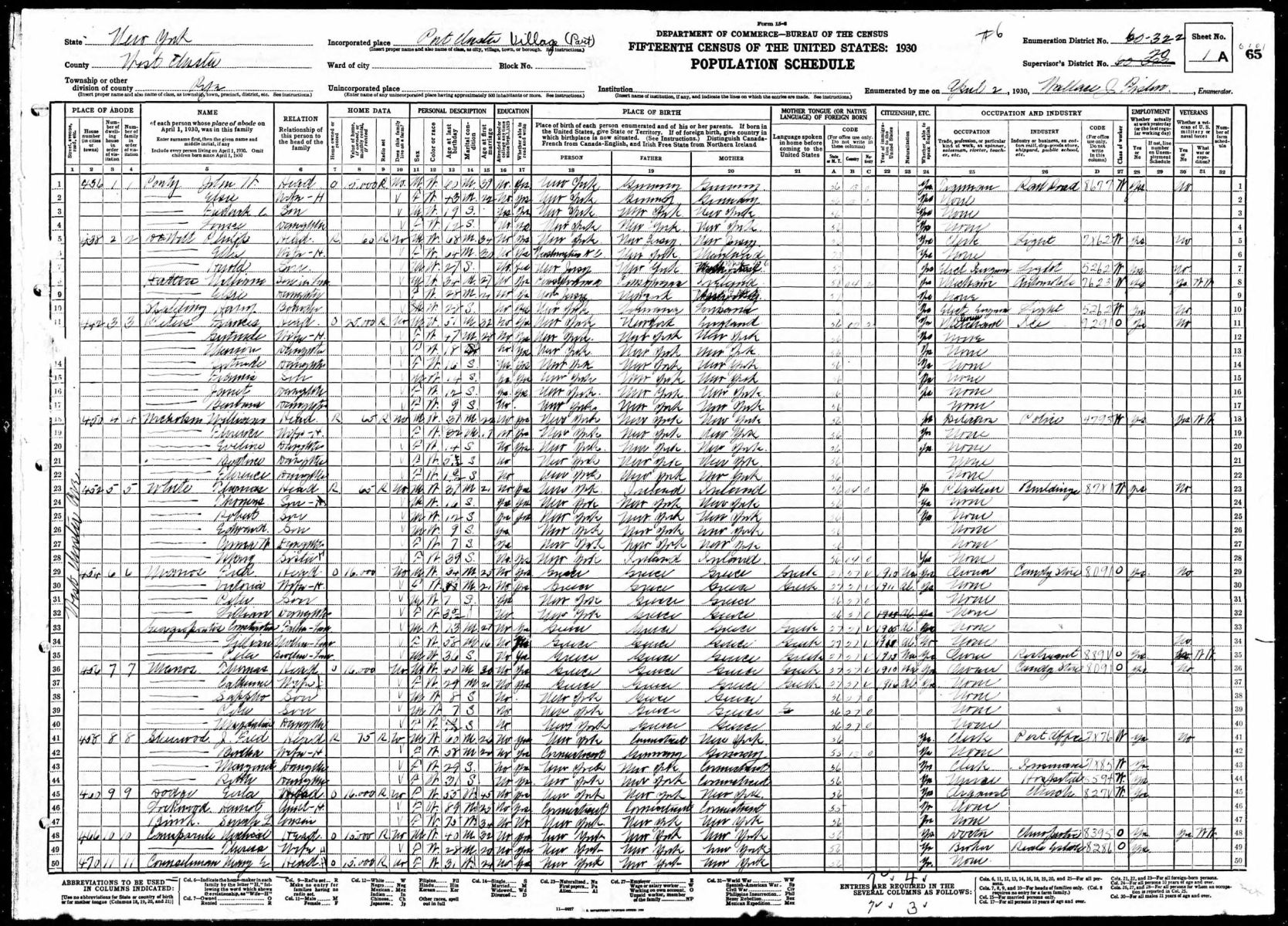 1930 U.S. census, Westchester County, New York, population schedule, Port Chester Village, enumeration district 60-322, p. 65-A, sheet 1 [penned], 452 Westchester Avenue, dwelling 5, family 5, Thomas White [Head]; digital images, Ancestry.com (www.ancestory.com : accessed 21 May 2023); citing NARA microfilm publication T626, roll 1665.